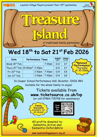 LVP are proud to announce their 2026 panto: “Treasure Island”, written by Rod and Nikki Fine, directed by Julia West, with music by Steve Webber.