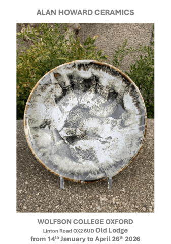 Wolfson College Linton RoadVenue, Timing and Cost Venue: Wolfson College, Oxford Date(s): Wednesday, 14 January 2026 to Sunday, 26 April 2026 Timing: 9am - 7pm Cost: Free Alan Howard Ceramics on display in the Old Lodge. Further Information Contact Details: Luisa Summers luisa.summers@wolfson.ox.ac.uk