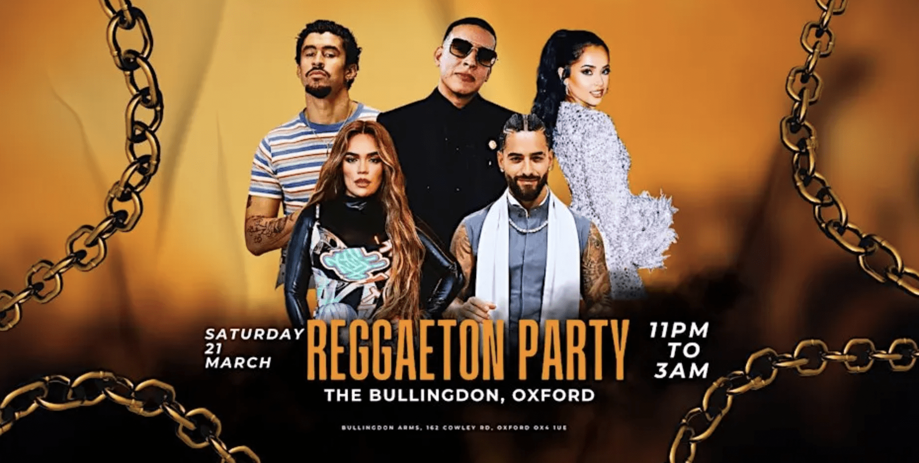 The Bullingdon 162 Cowley Road, Oxford, United KingdomOverview The UK's biggest Reggaeton Fiesta is coming back to Oxford this March! The UK's biggest Reggaeton Fiesta is coming back to Oxford this March! After sell out nights around the country Reggaeton Party is bringing that Latin Fever back to Oxford for a huge fiesta! 100% Reggaeton Anthems all night long at the legendary […]